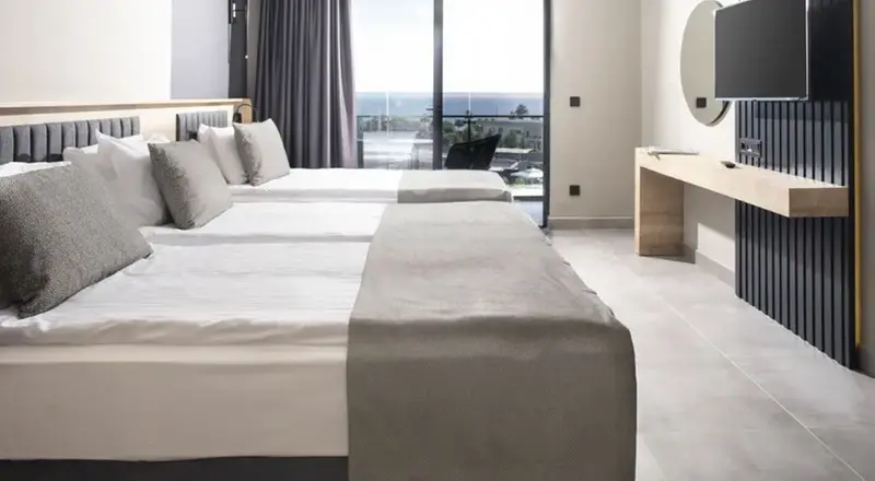 Our standard rooms are designed with every detail in mind for your comfort. Our rooms are 23 m² and feature comfortable single or double beds, a safe, a kettle, a telephone, a tea and coffee maker, a smart TV (for YouTube, etc.), a hairdryer, a make-up mirror, air conditioning, a shower, a toilet, a mini-fridge, shampoo, shower gel, and conditioner. Our rooms have stylish ceramic floors. Wi-Fi is available in rooms and public areas free of charge. You can also use your smart phone's Wi-Fi interface throughout the facility to contact a guest representative regarding all your needs and requests, and have your orders delivered to your room directly from your phone. All rooms have balconies. Room Features WI-FI HAIR DRYER LED TV SHOWER SAFETY AIR CONDITIONING MINI BAR TEA AND COFFEE MAKER 24-HOUR ROOM SERVICE TURNDOWN SERVICE (EXTRA)